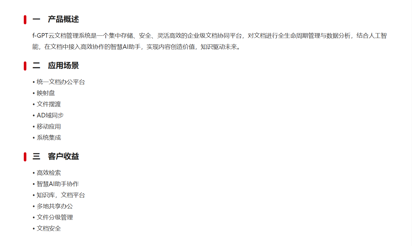 f-GPT云文檔管理系統(tǒng)是一個(gè)集中存儲(chǔ)、安全、靈活高效的企業(yè)級(jí)文檔協(xié)同平臺(tái),對(duì)文檔進(jìn)行全生命周期管理與數(shù)據(jù)分析,結(jié)合人工智能,在文檔中接入高效協(xié)作的智慧AI助手,實(shí)現(xiàn)內(nèi)容創(chuàng)造價(jià)值,知識(shí)驅(qū)動(dòng)未來。